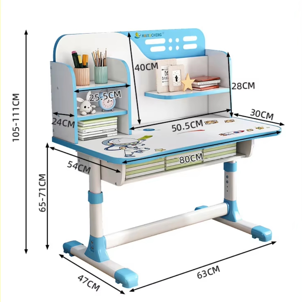 Với mặt bàn rộng 80cm – sâu 54cm, C05 mang lại không gian học tập rộng rãi, đủ chỗ cho cả sách, vở và máy tính bảng. Chiều cao bàn và ghế có thể điều chỉnh linh hoạt theo từng độ tuổi, giúp bé sử dụng lâu dài mà vẫn đảm bảo tư thế ngồi học khoa học, dễ chịu.