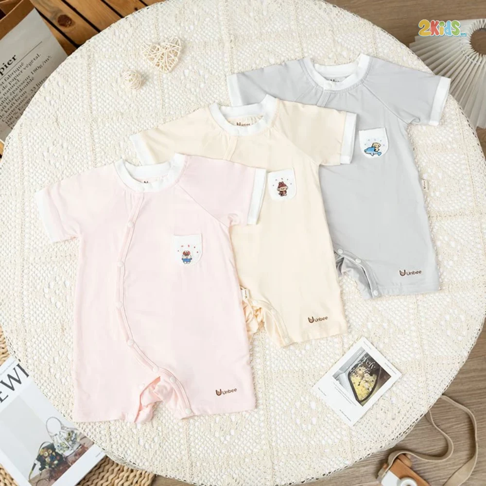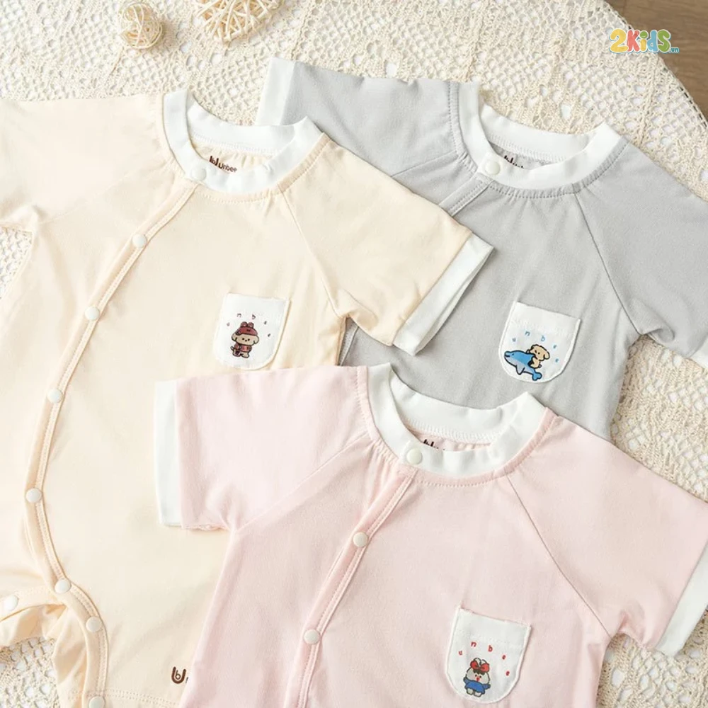 Bodu Unbee cộc tay phối túi cho bé từ 0-12tháng - Body cộc tay xinh xắn cao cấp mềm mại