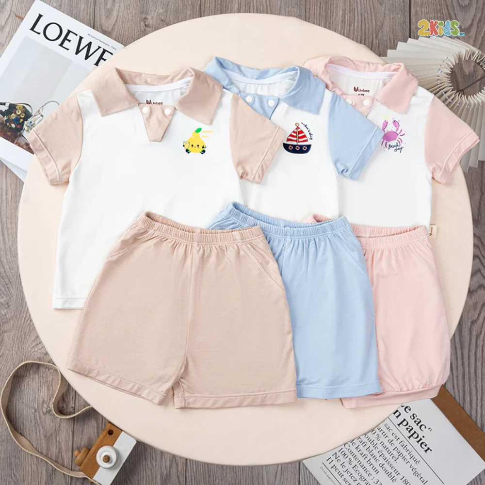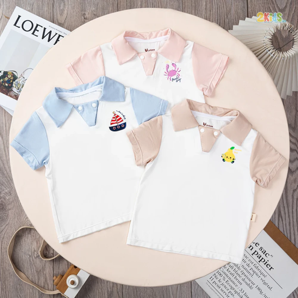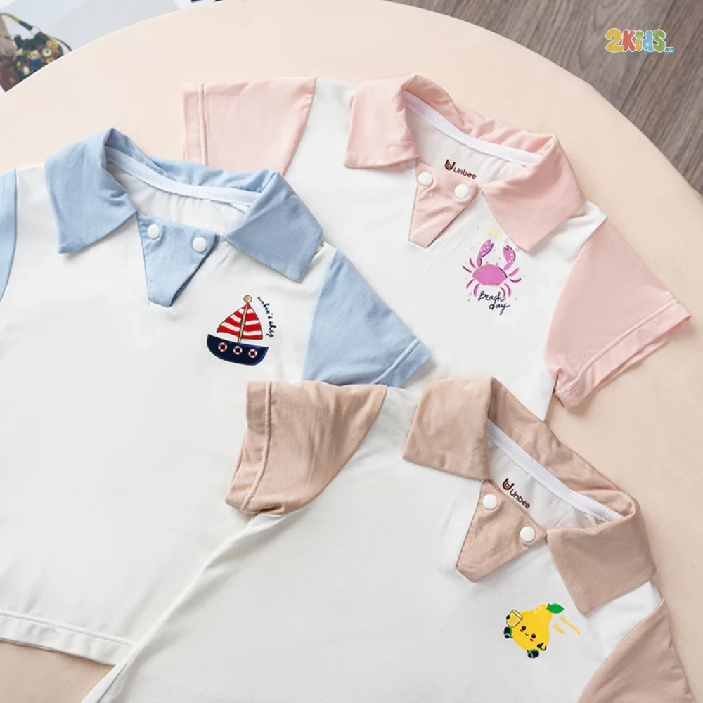 Bộ cộc tay được thiết kế phối thêm cổ, khỏe khoắn, năng động, bé đi học hay đi chơi đều rất thoải mái