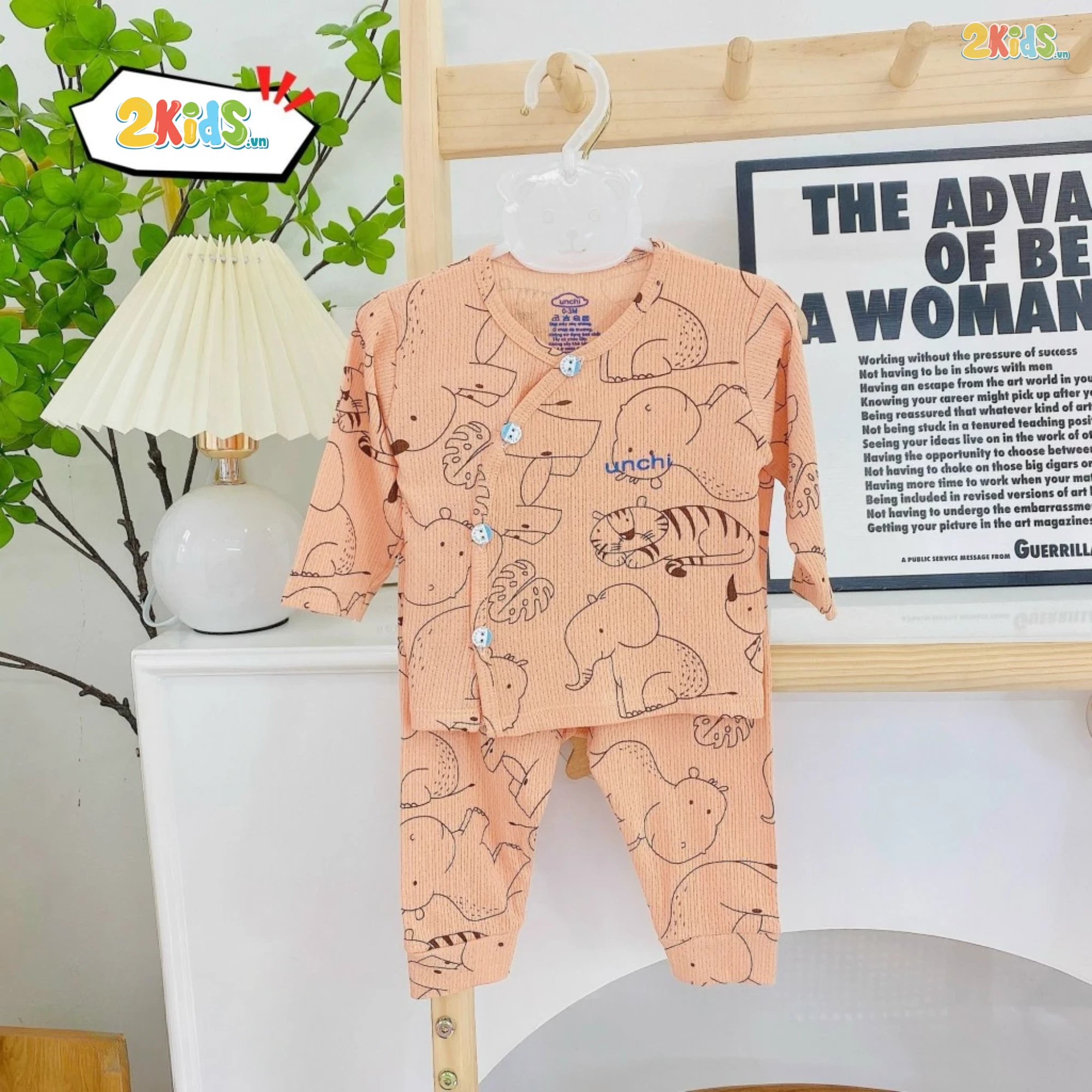 Bộ Quần Áo Sơ Sinh Unchi Dài Tay Thun Lạnh Cài Chéo