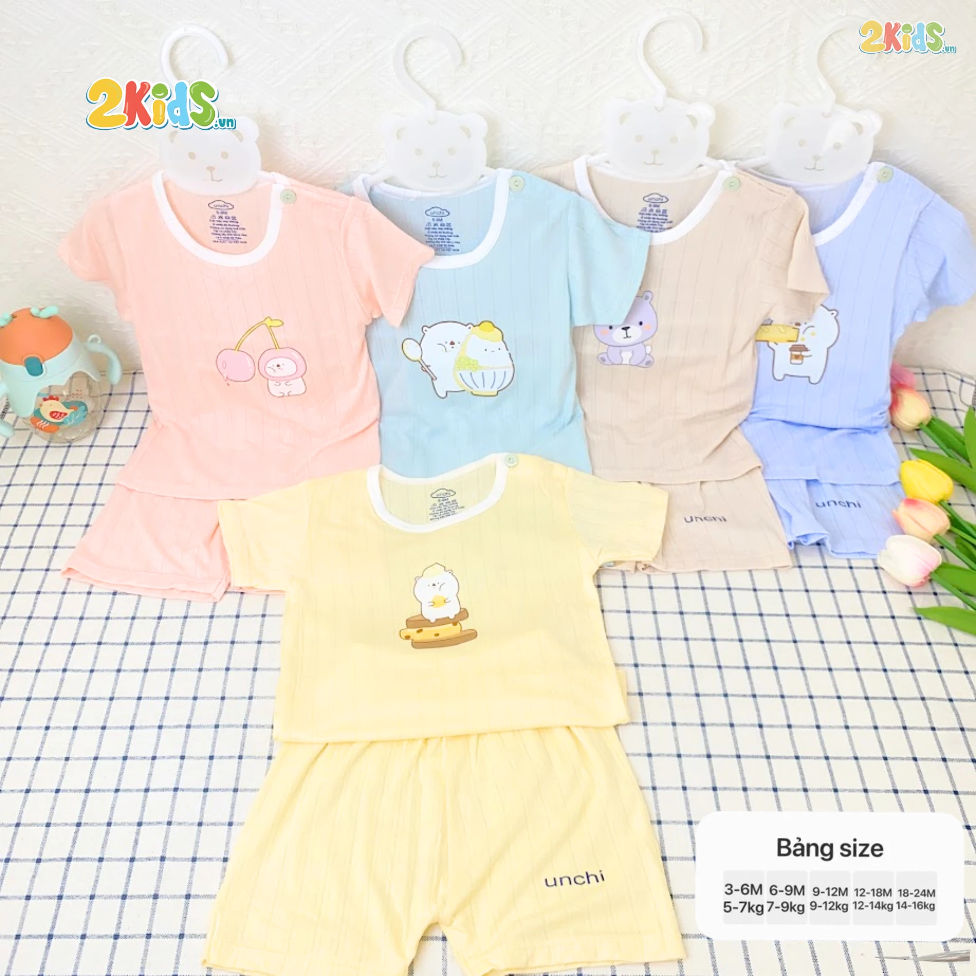 Bộ Quần Áo Sơ Sinh Unchi Cộc Tay Thun Lạnh Thông Hơi