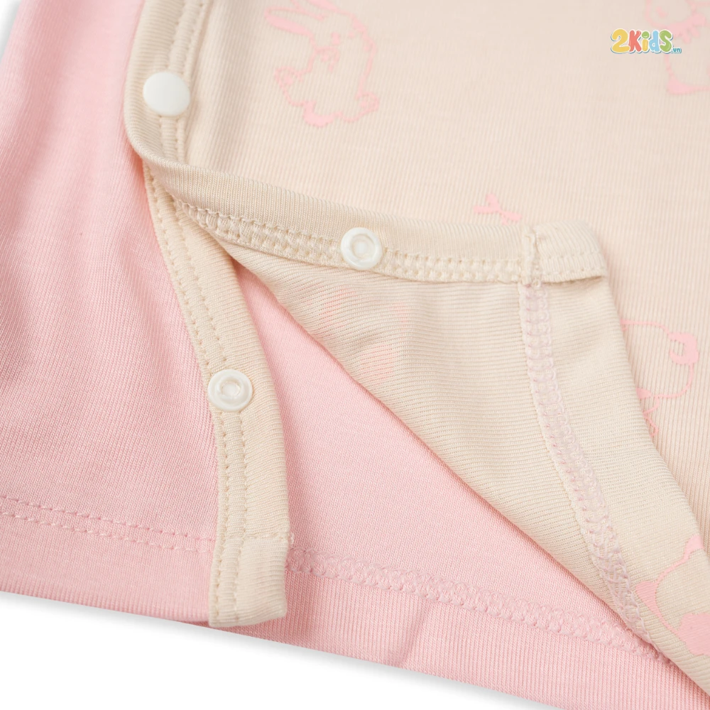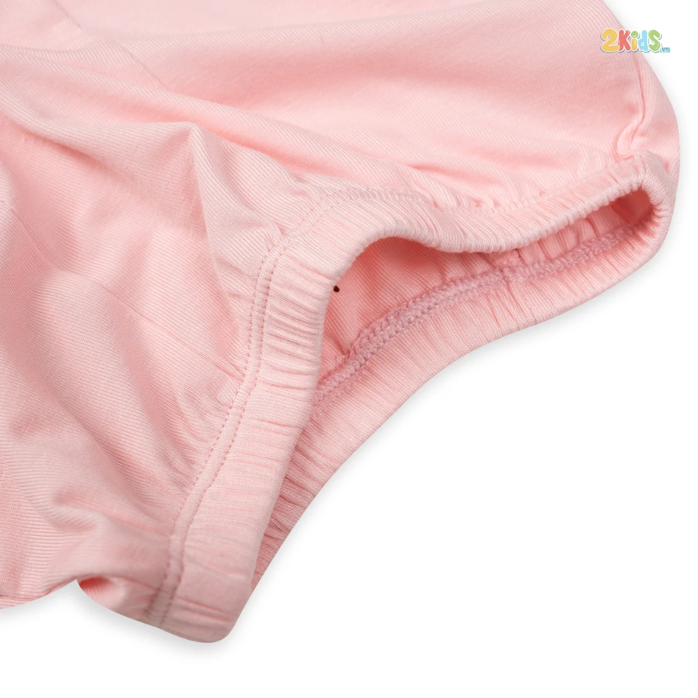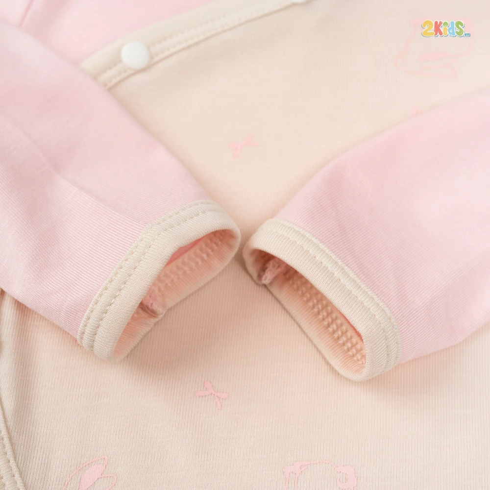 Phần quần được thiết kế dạng 2 mảnh đáp đũng, giúp mẹ thuận tiện hơn khi thay bỉm cho bé mà không gây khó chịu hay vướng víu. Từng đường may được xử lý cẩn thận để đảm bảo không cọ xát vào làn da mỏng manh của con.