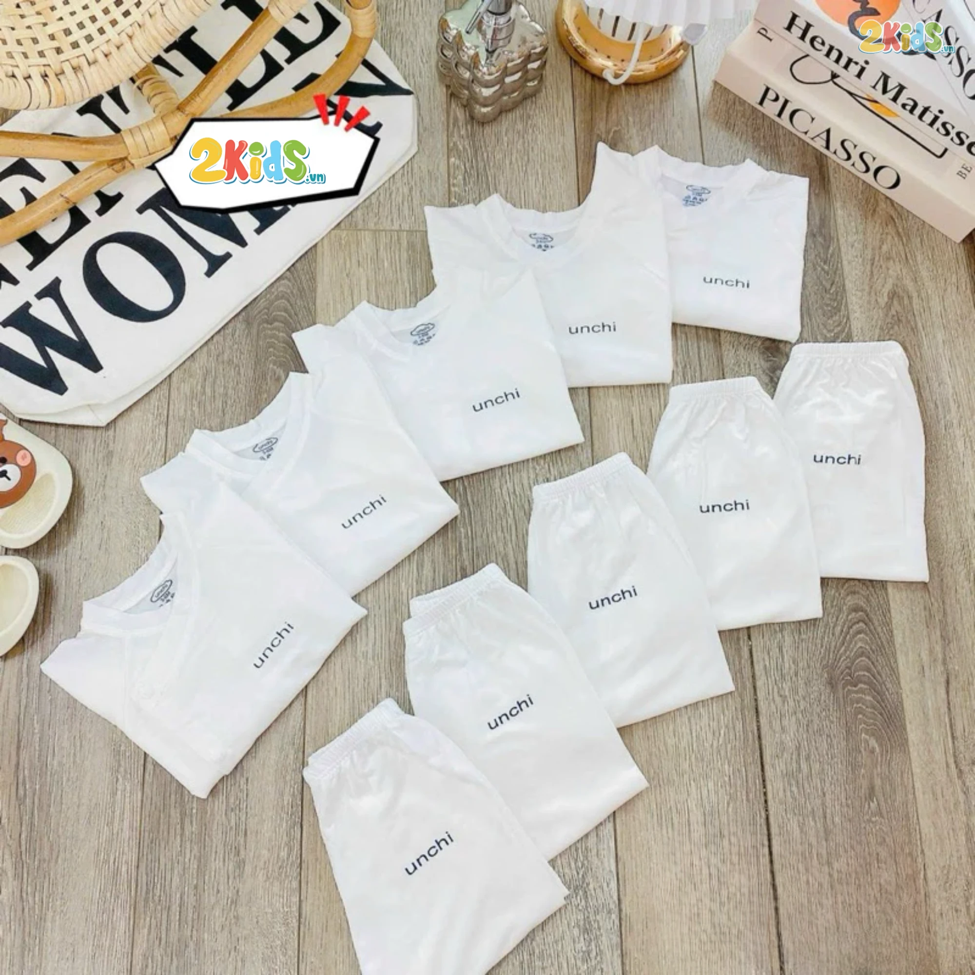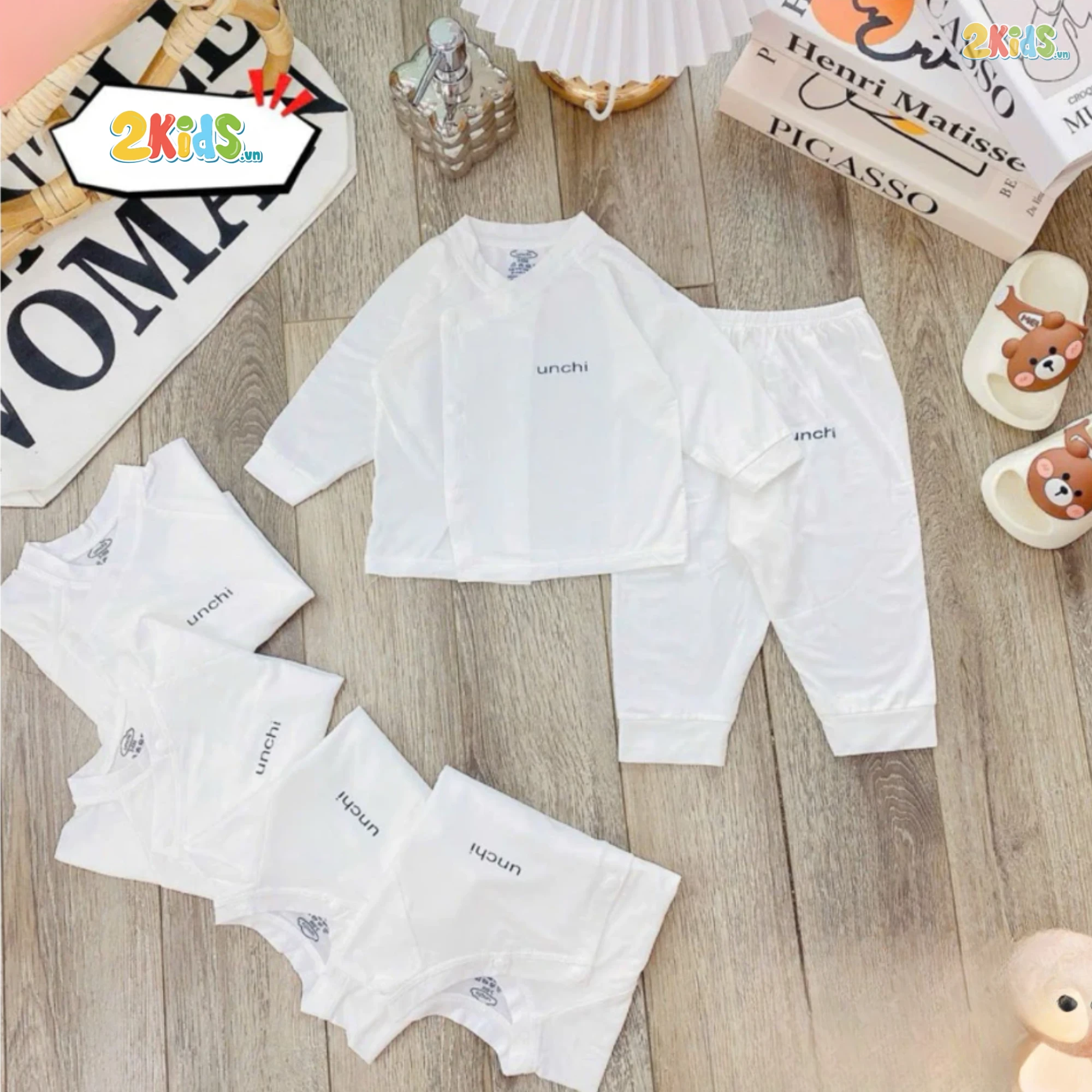 Bộ sơ sinh dài tay Unchi trắng cúc bấm cài chéo