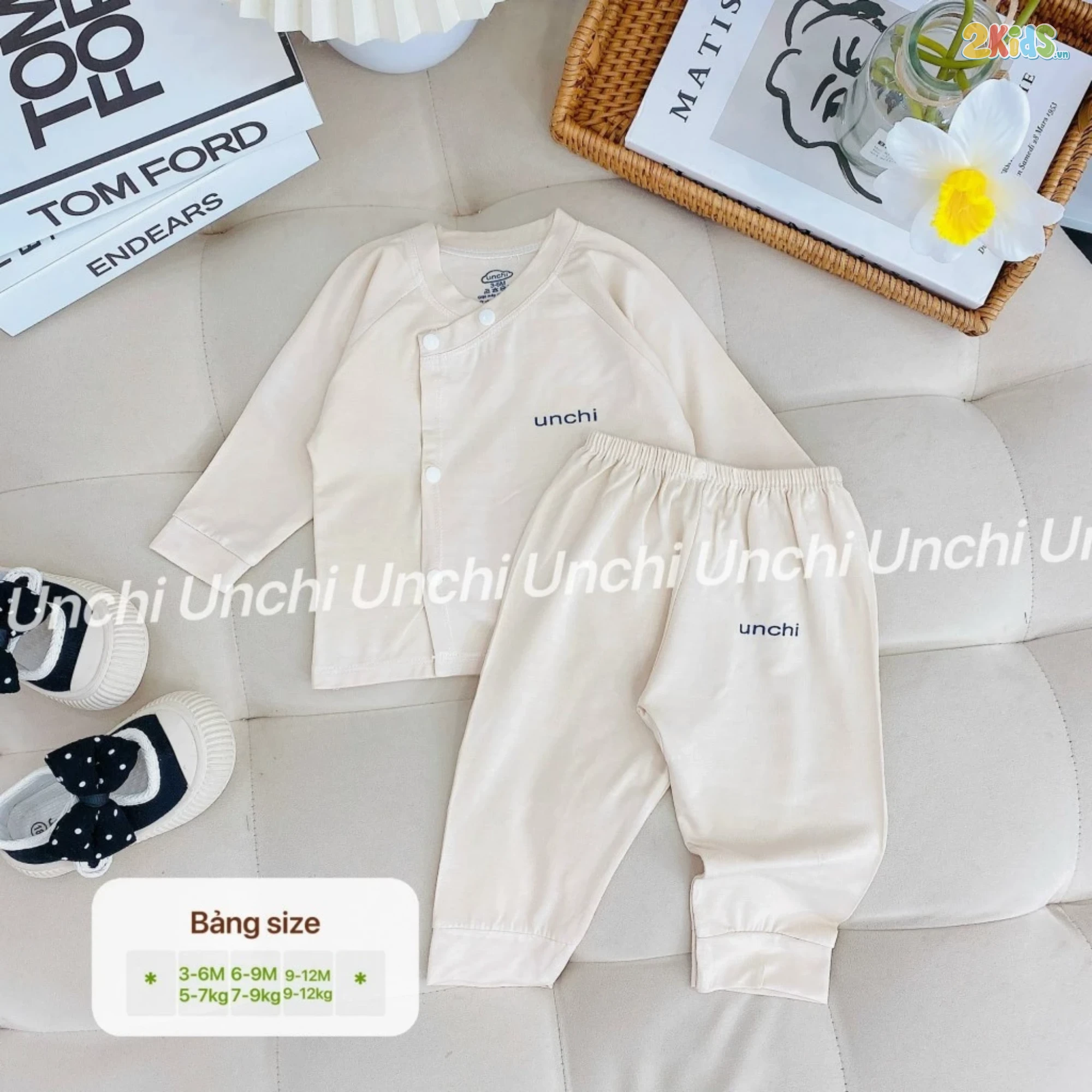 Combo 3 Bộ Quần Áo Sơ Sinh Unchi Dài Tay Cài Lệch Màu Dễ Thương