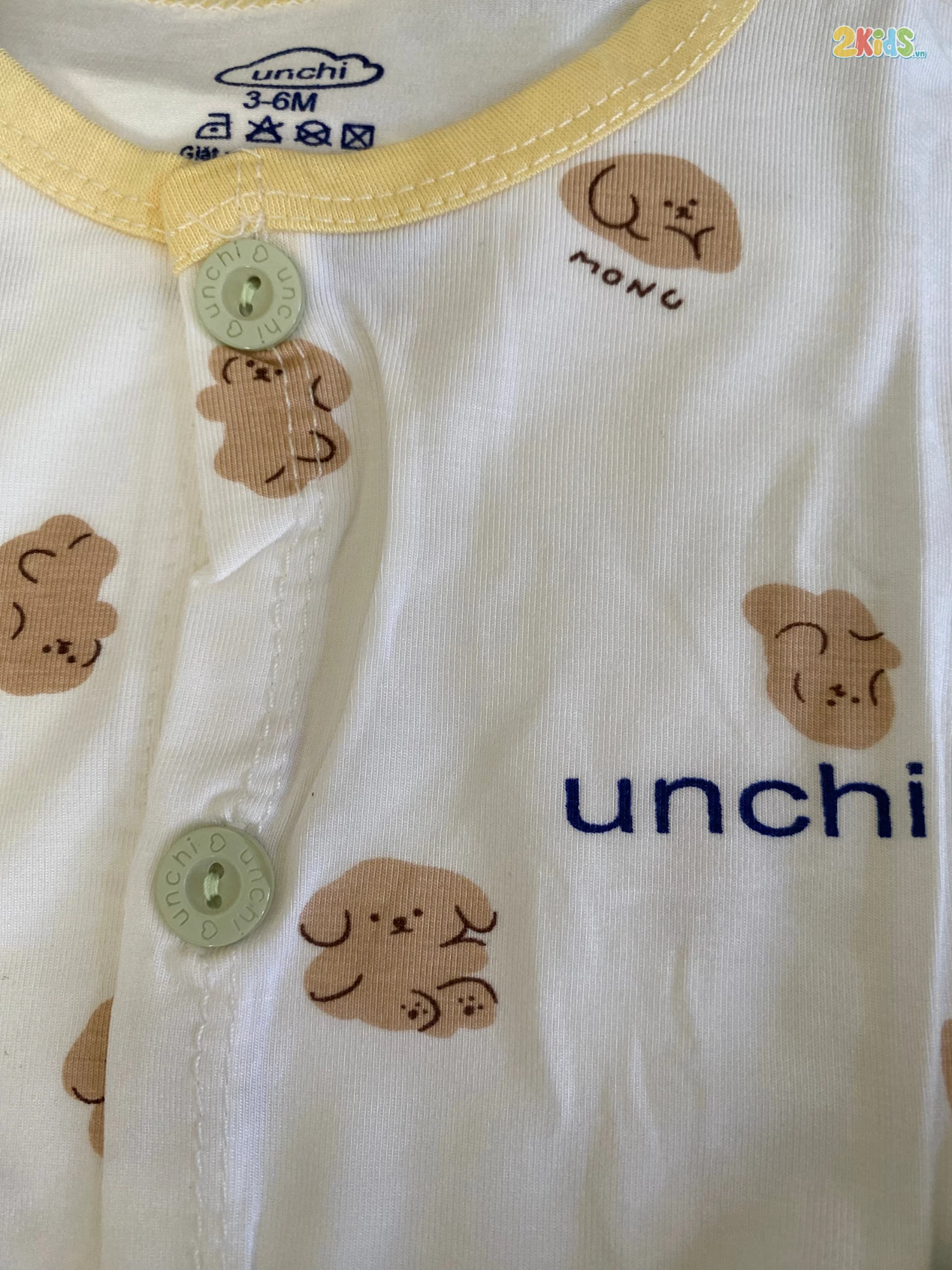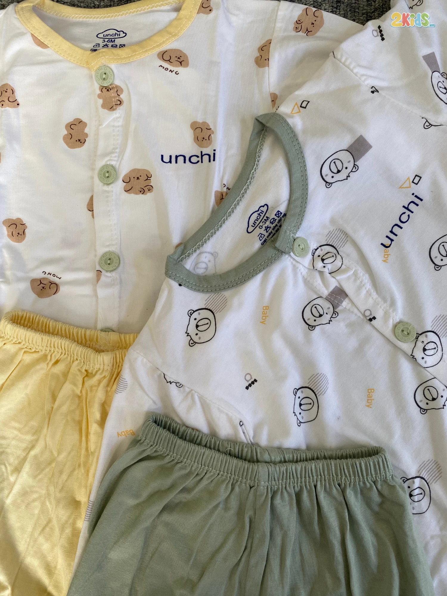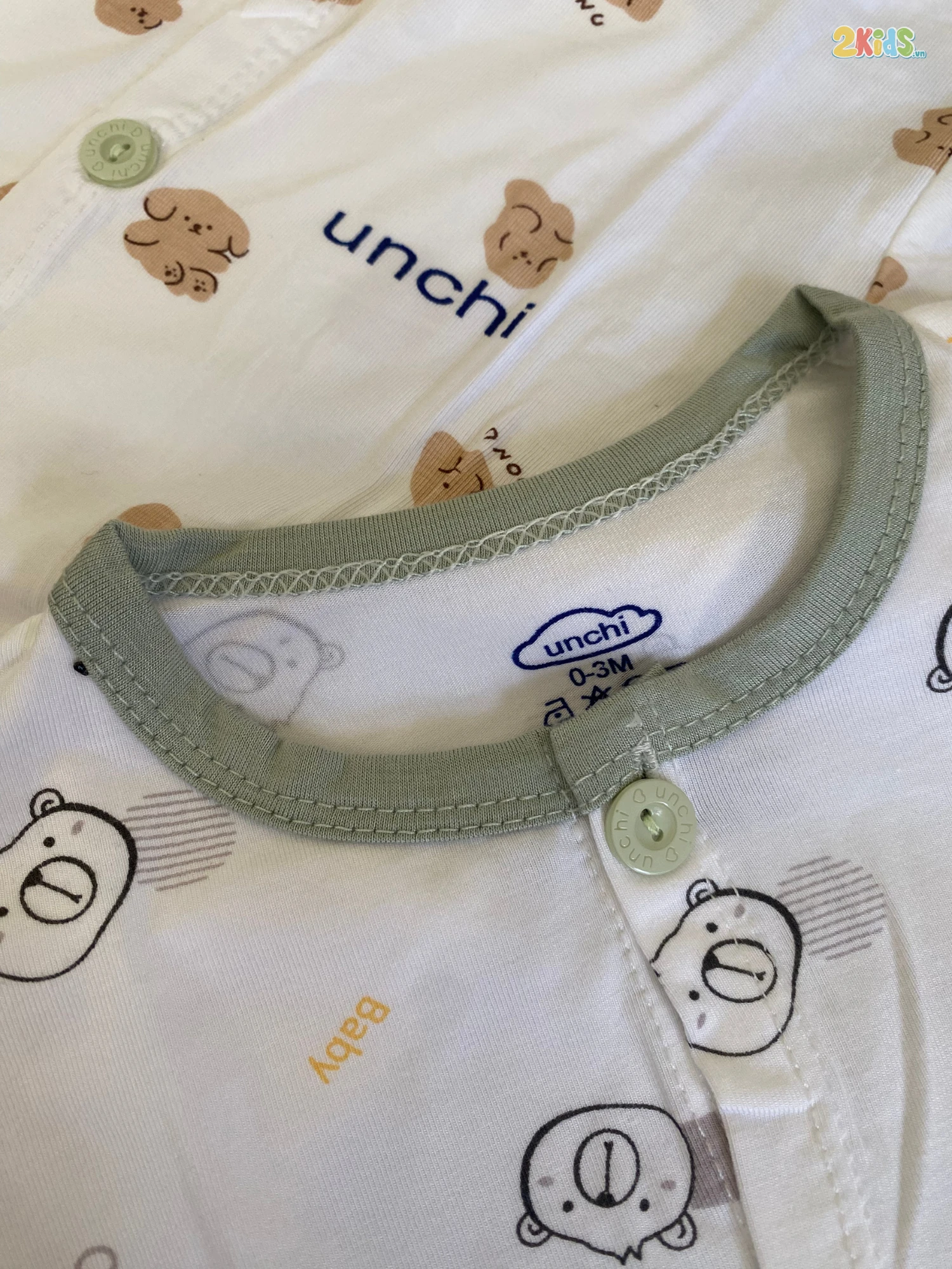 Combo 3 Bộ Quần Áo Sơ Sinh Unchi Dài Tay Cúc Giữa Trắng In Hình