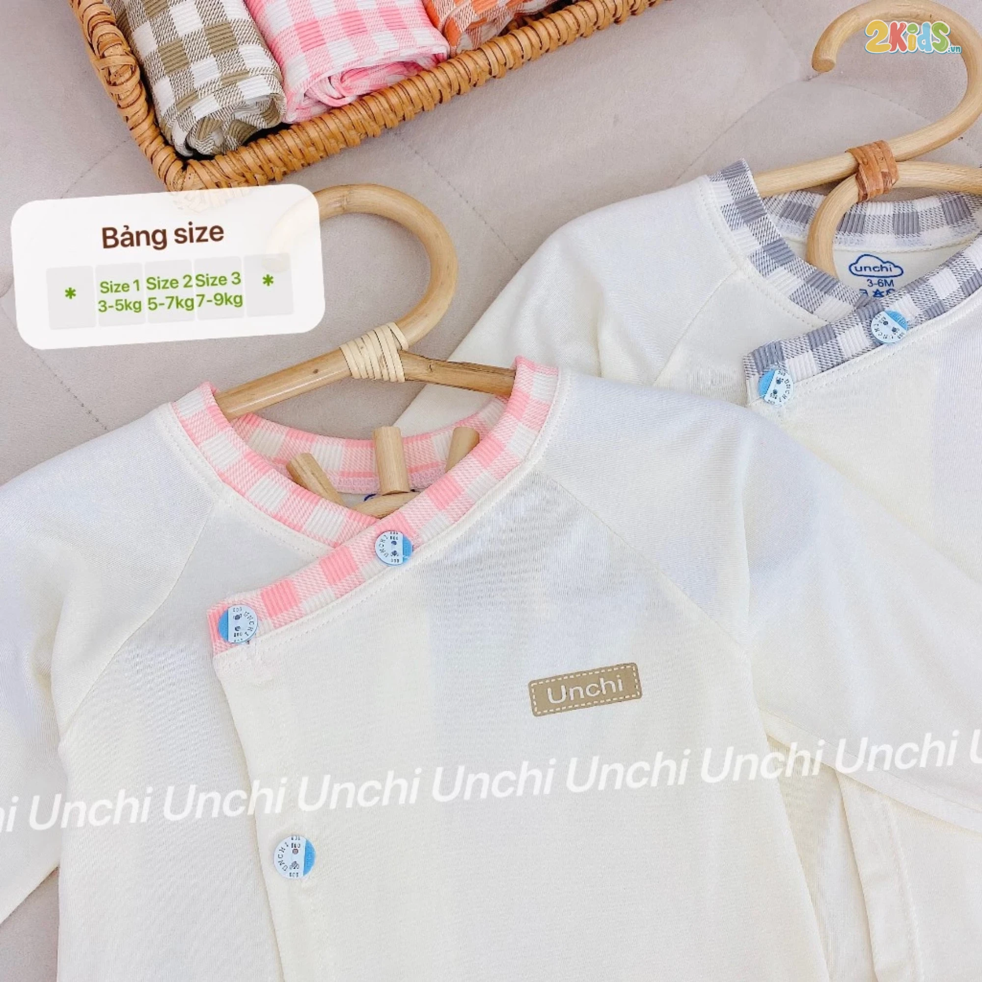Combo 3 Bộ Quần Áo Sơ Sinh Unchi Dài Tay Cúc Lệch Kẻ Caro