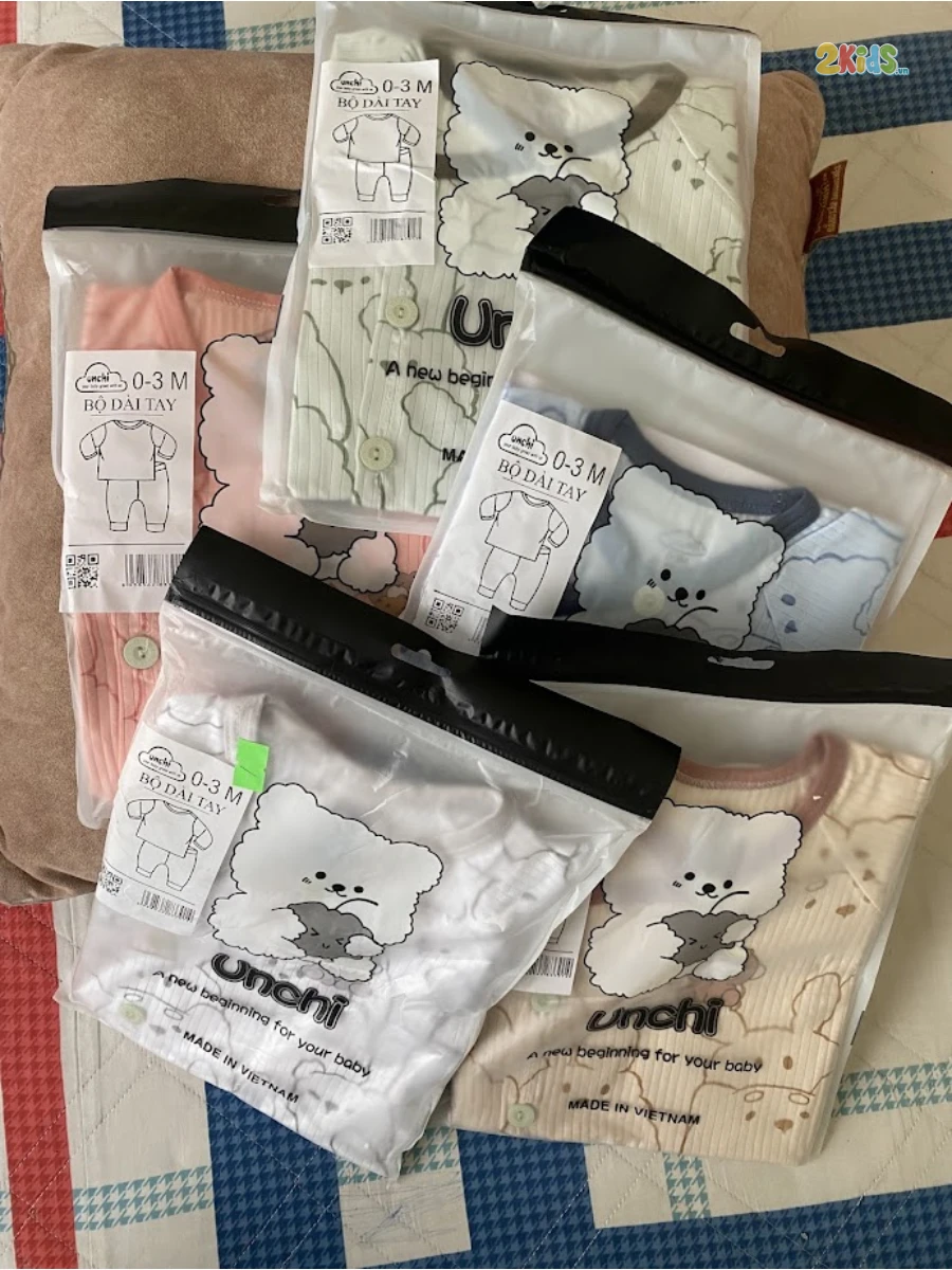Combo 3 Bộ Quần Áo Sơ Sinh Unchi Dài Tay Sợi Tre In Hoạ Tiết