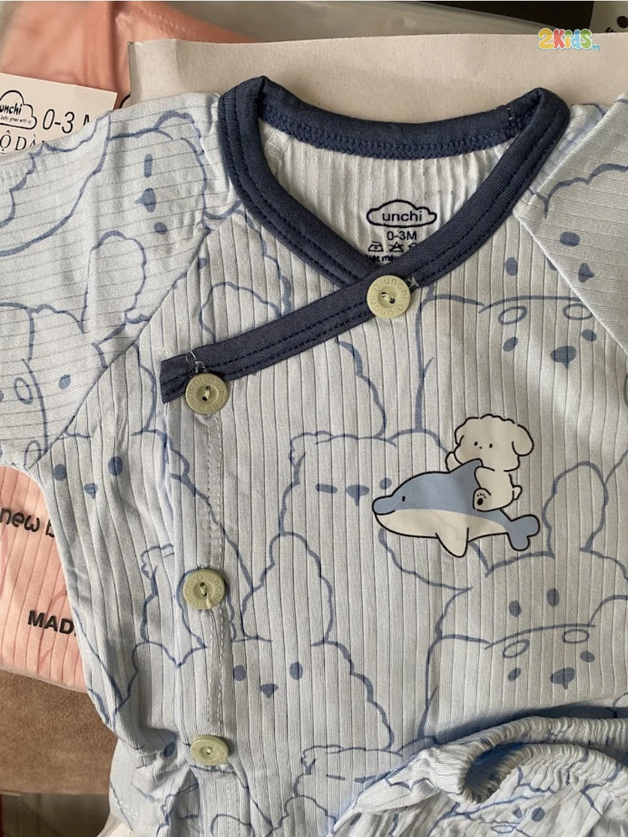 Combo 3 Bộ Quần Áo Sơ Sinh Unchi Dài Tay Sợi Tre In Hoạ Tiết