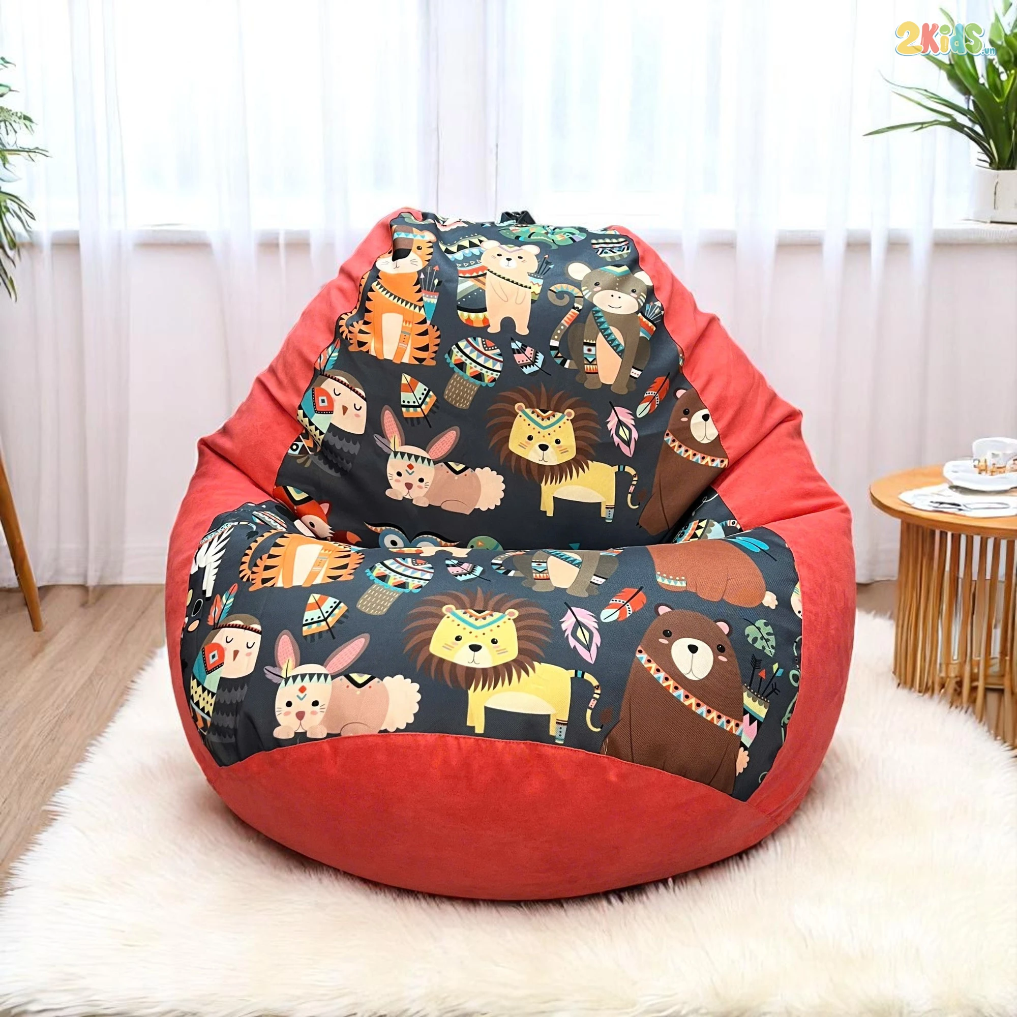 Ghế lười giọt nước màu cam in hình ngộ nghĩnh được nhiều người ưa chuộng bởi màu sắc nổi bật kết hợp hình thú đáng yêu. Sản phẩm có thể sử dụng cho trẻ em, người lớn, bà bầu và dùng trong nhiều không gian khác nhau.