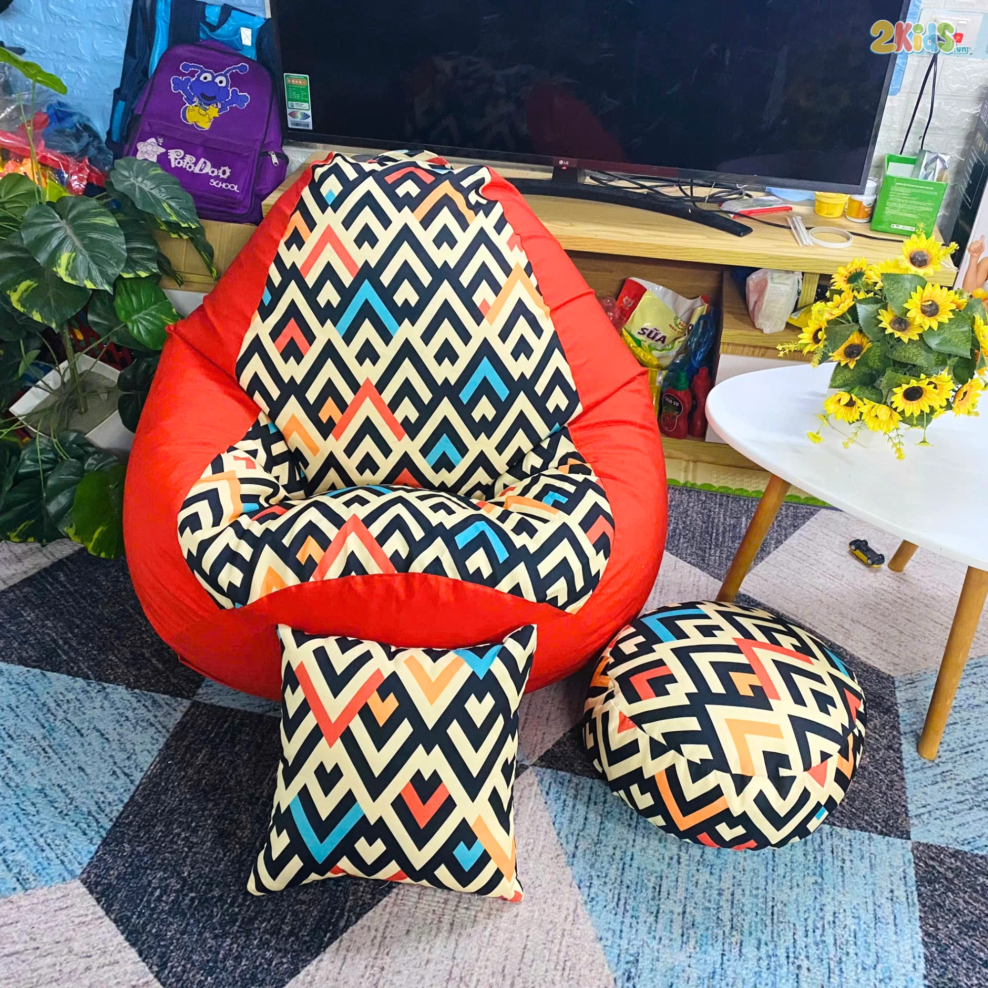 Ghế Lười Hạt Xốp Hình Quả Lê In Họa Tiết Màu Cam