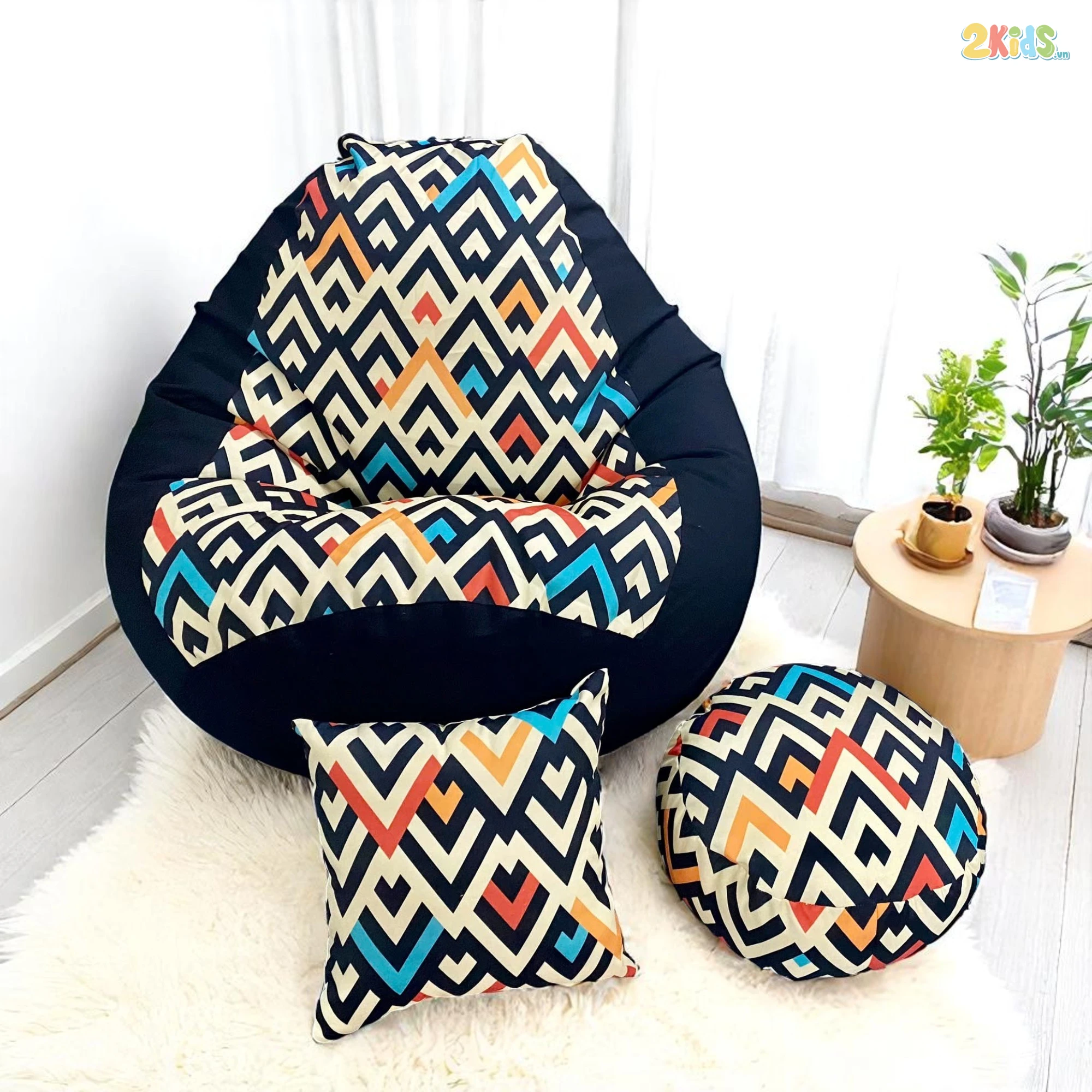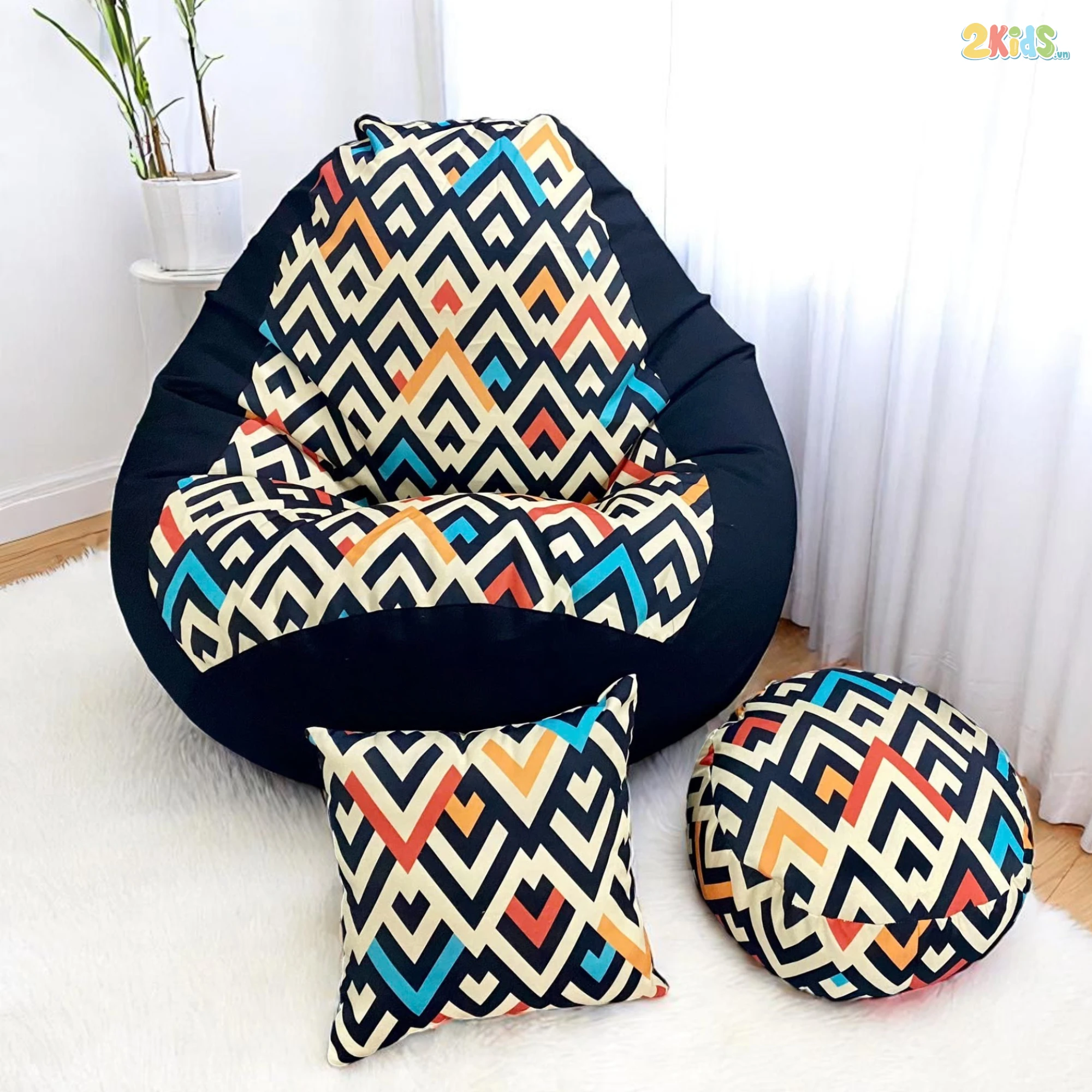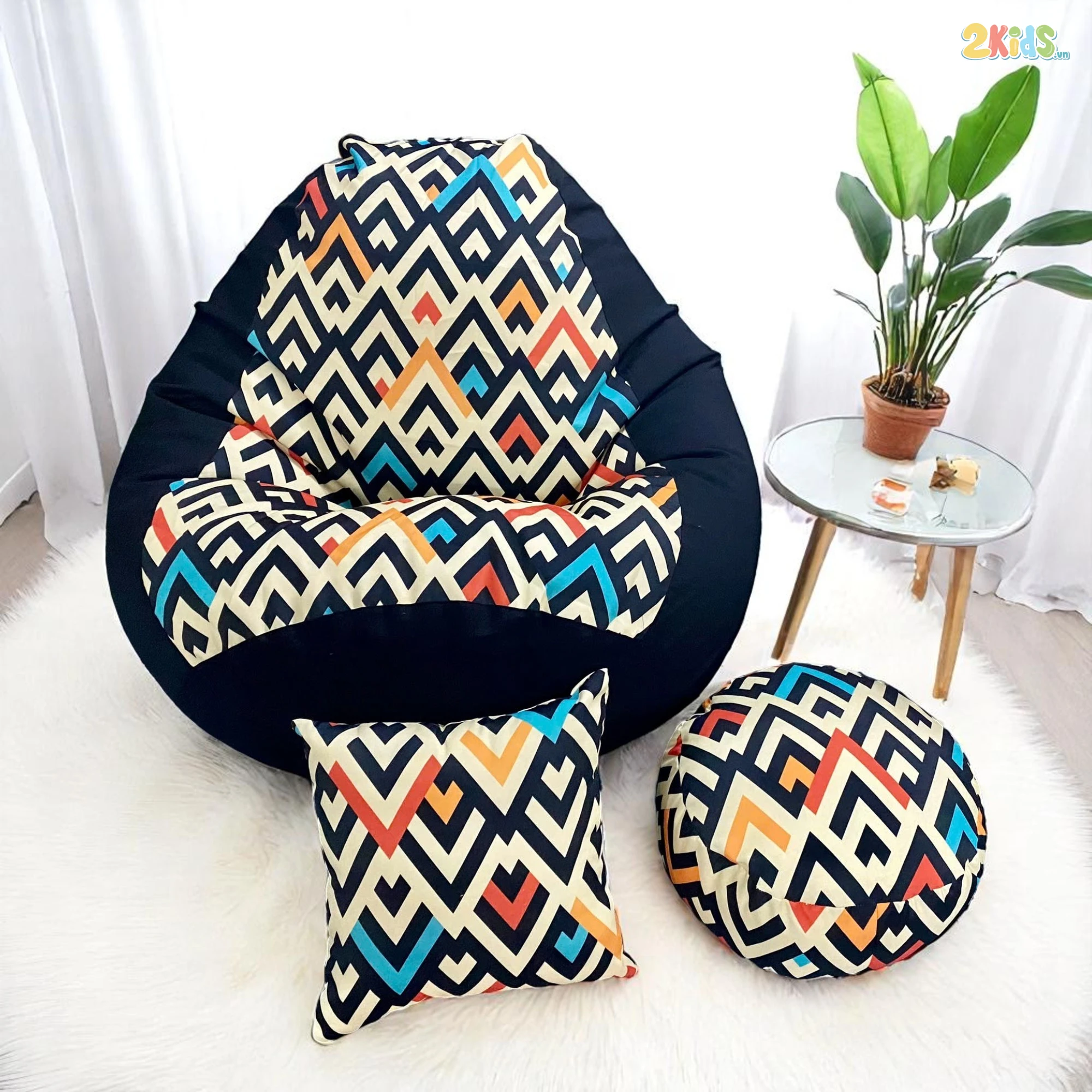 Ghế Lười Hạt Xốp Hình Quả Lê In Họa Tiết Màu Đen
