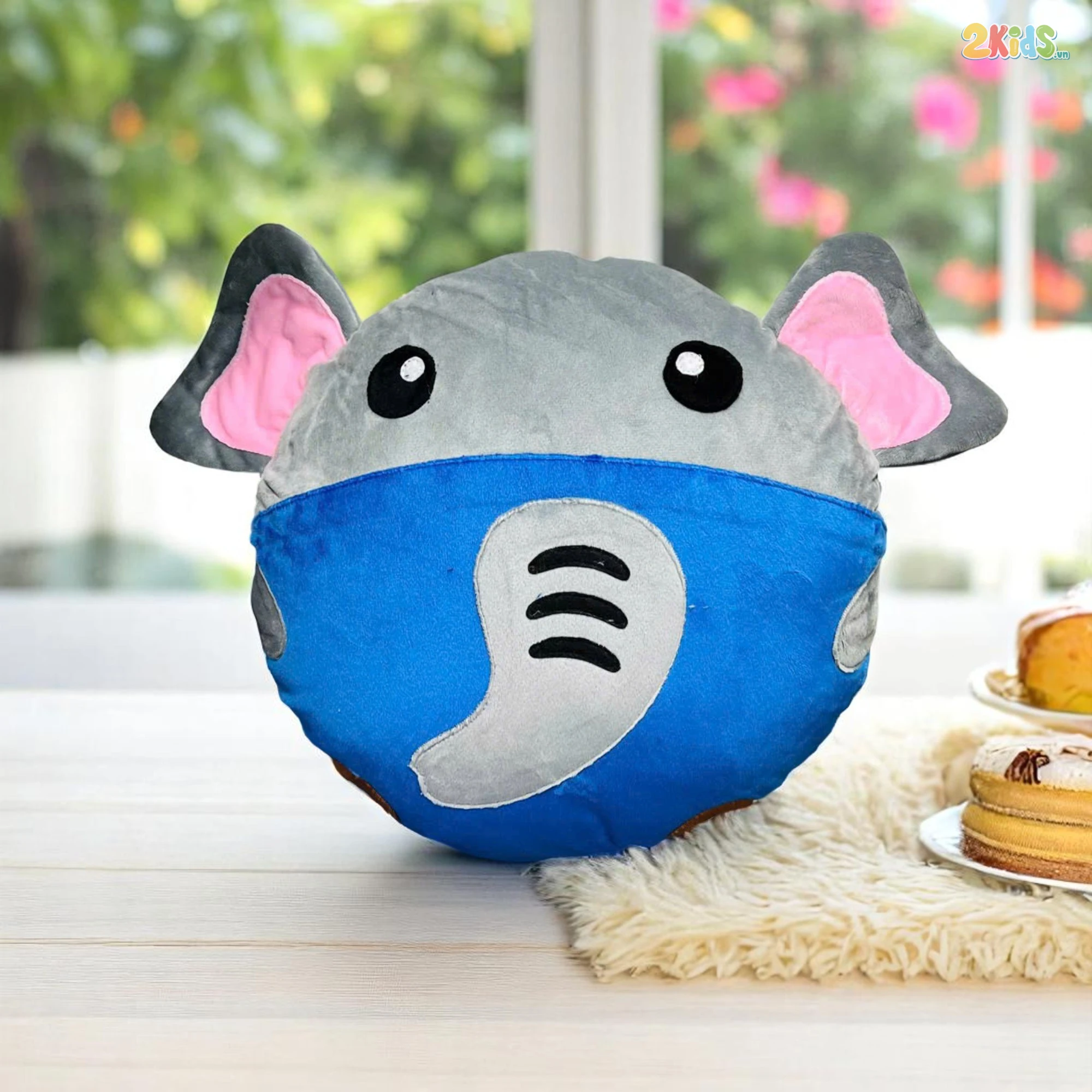 Chiếc ghế lười mô phỏng hình dáng chú voi với đôi tai to đặc trưng,chiếc voi dài và đôi mắt long lanh với tông màu ghi và xanh dương chủ đạo những gam màu nhẹ nhàng dễ phối với không gian như phòng ngủ và phòng đọc sách.