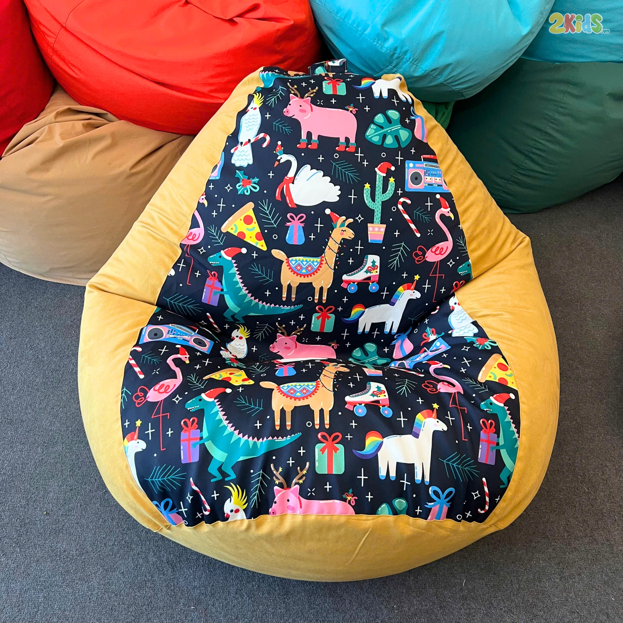 Ghế Lười Hạt Xốp Hình Thú Màu Vàng