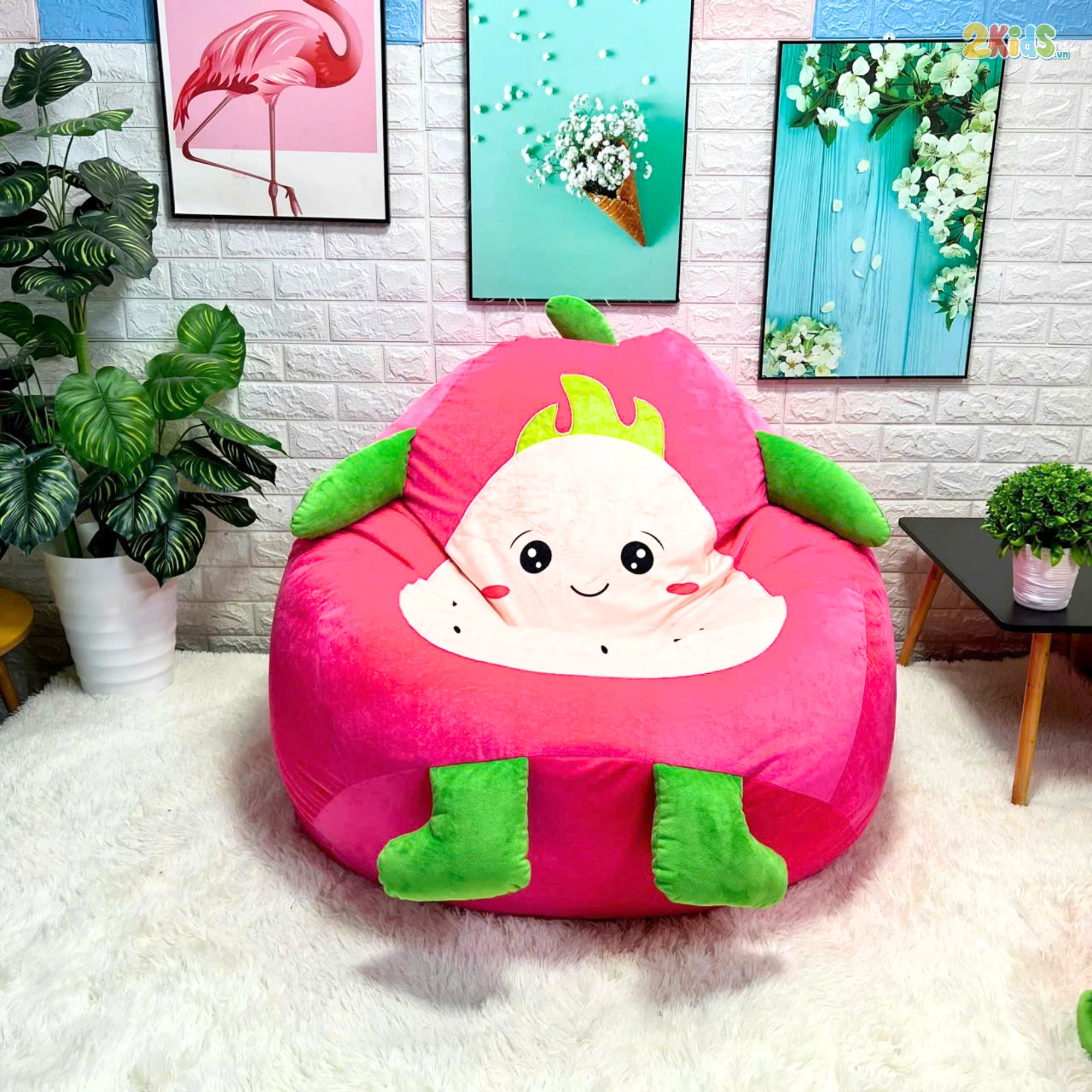 Ghế lười hạt xốp hình trái thanh long + đôn, gối ôm