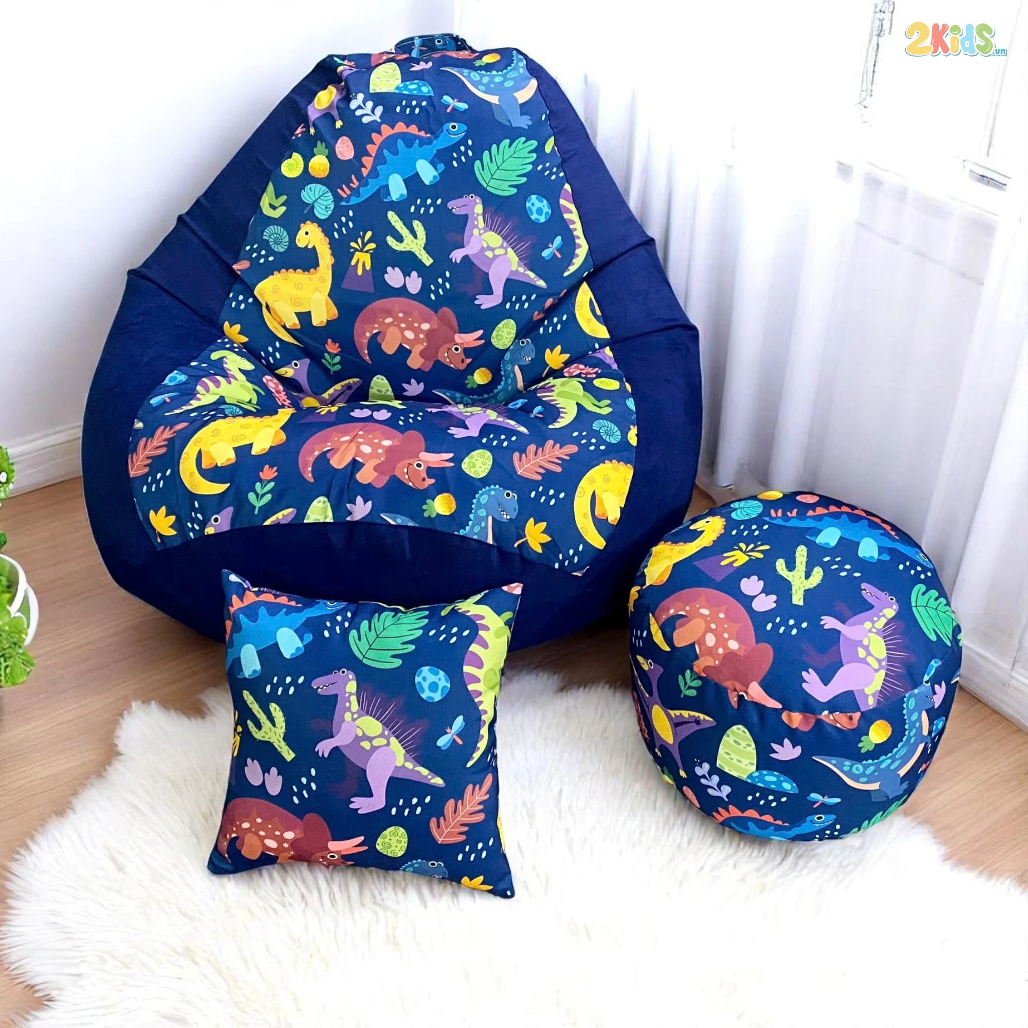 Ghế Lười Hạt Xốp Họa Tiết Khủng Long Xanh
