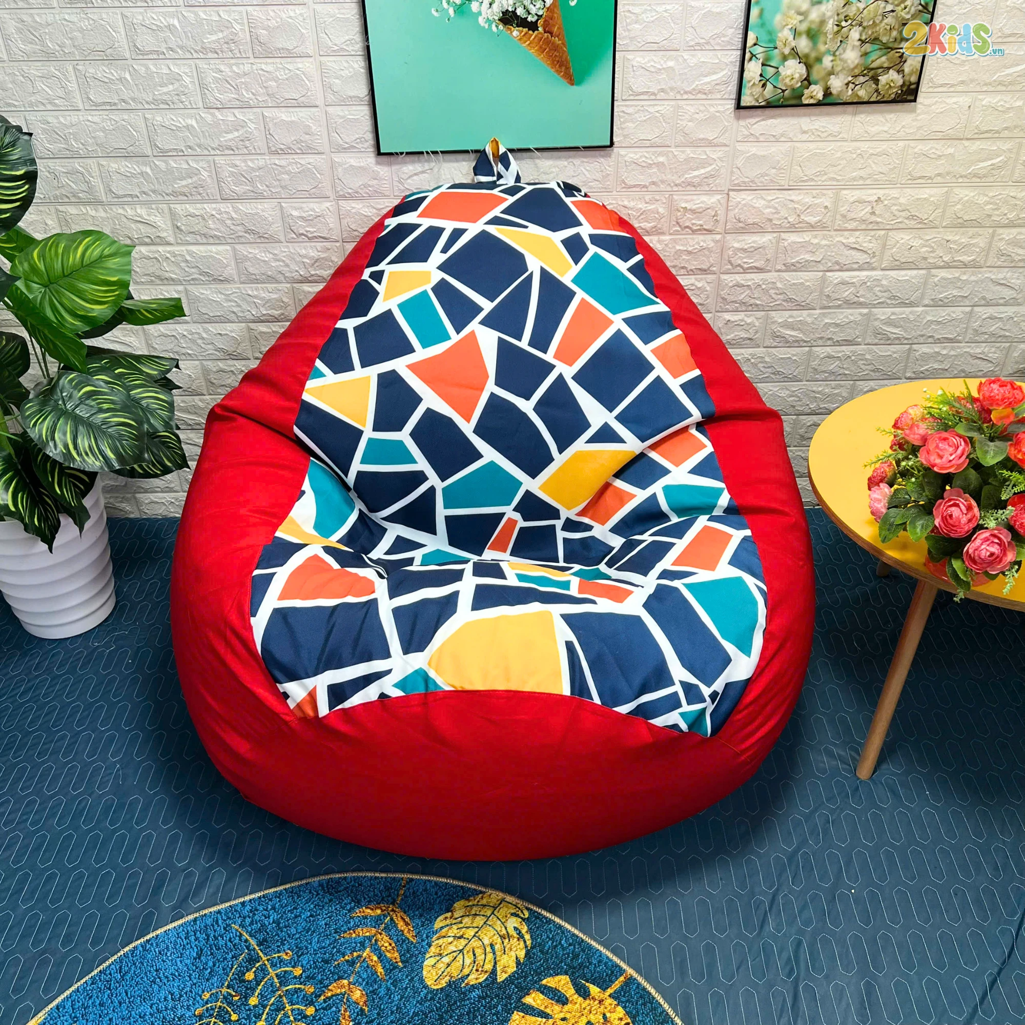 Ghế Lười Hạt Xốp Màu Đỏ Họa Tiết Độc Đáo