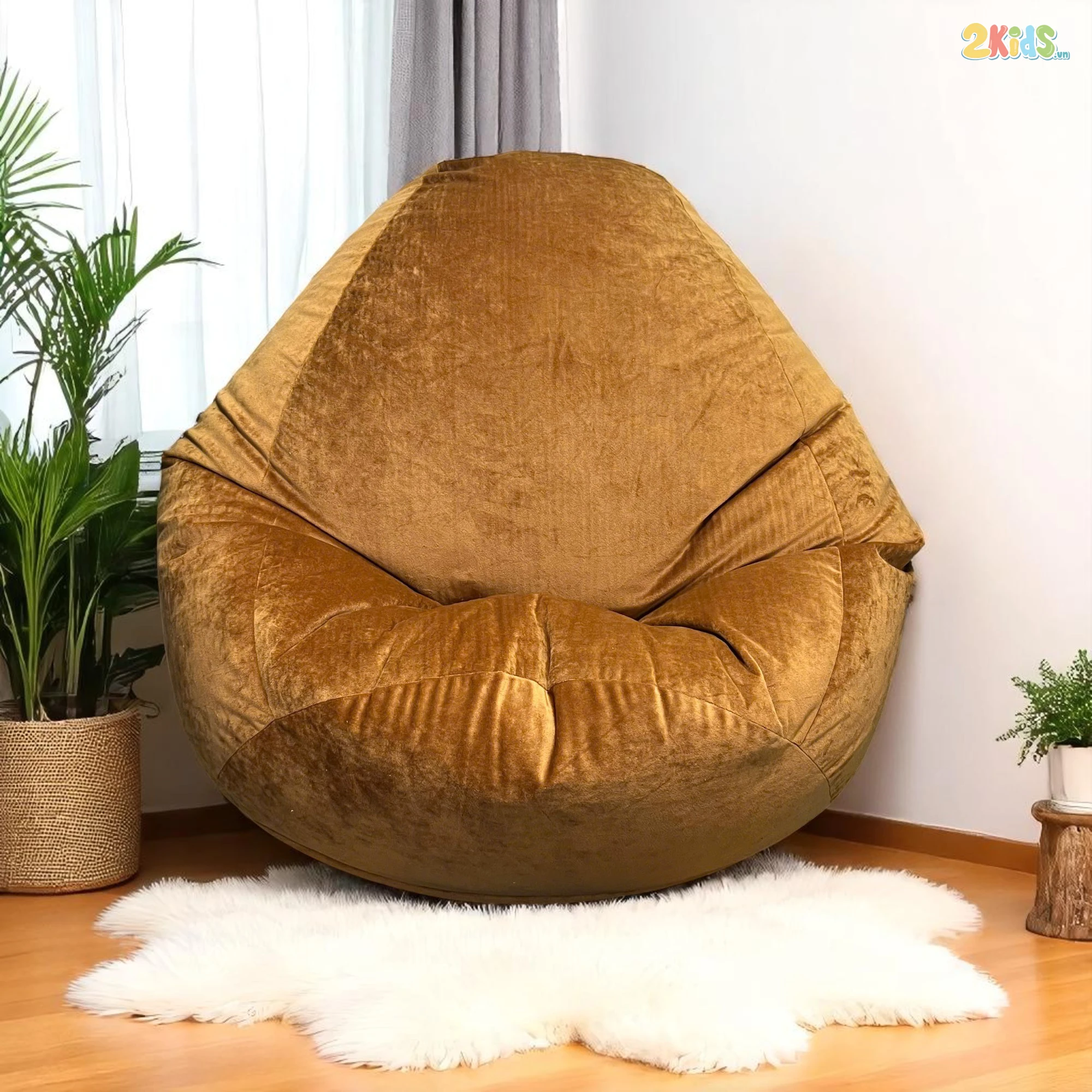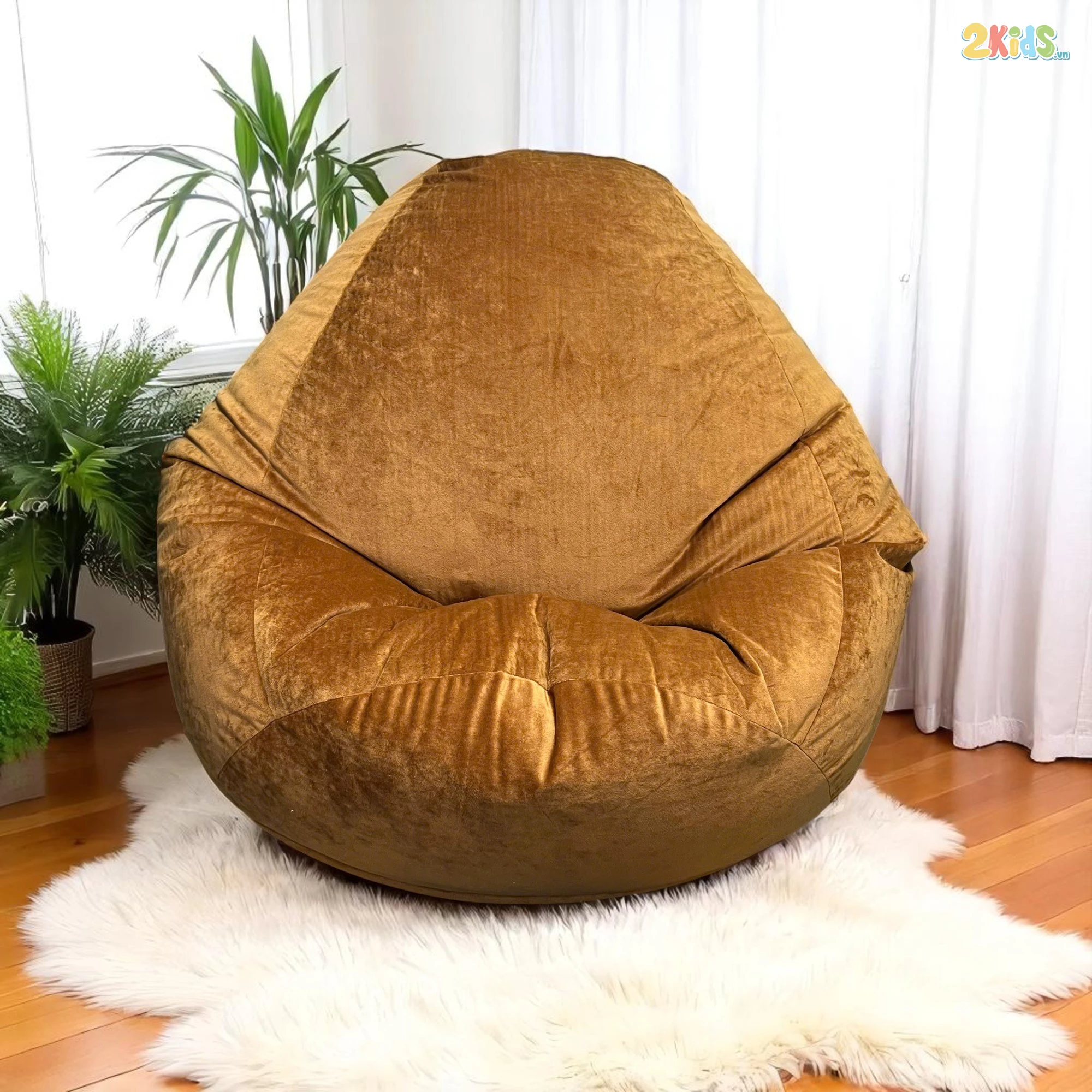 Ghế Lười Hạt Xốp Thư Giãn Vải Nhung Màu Nâu