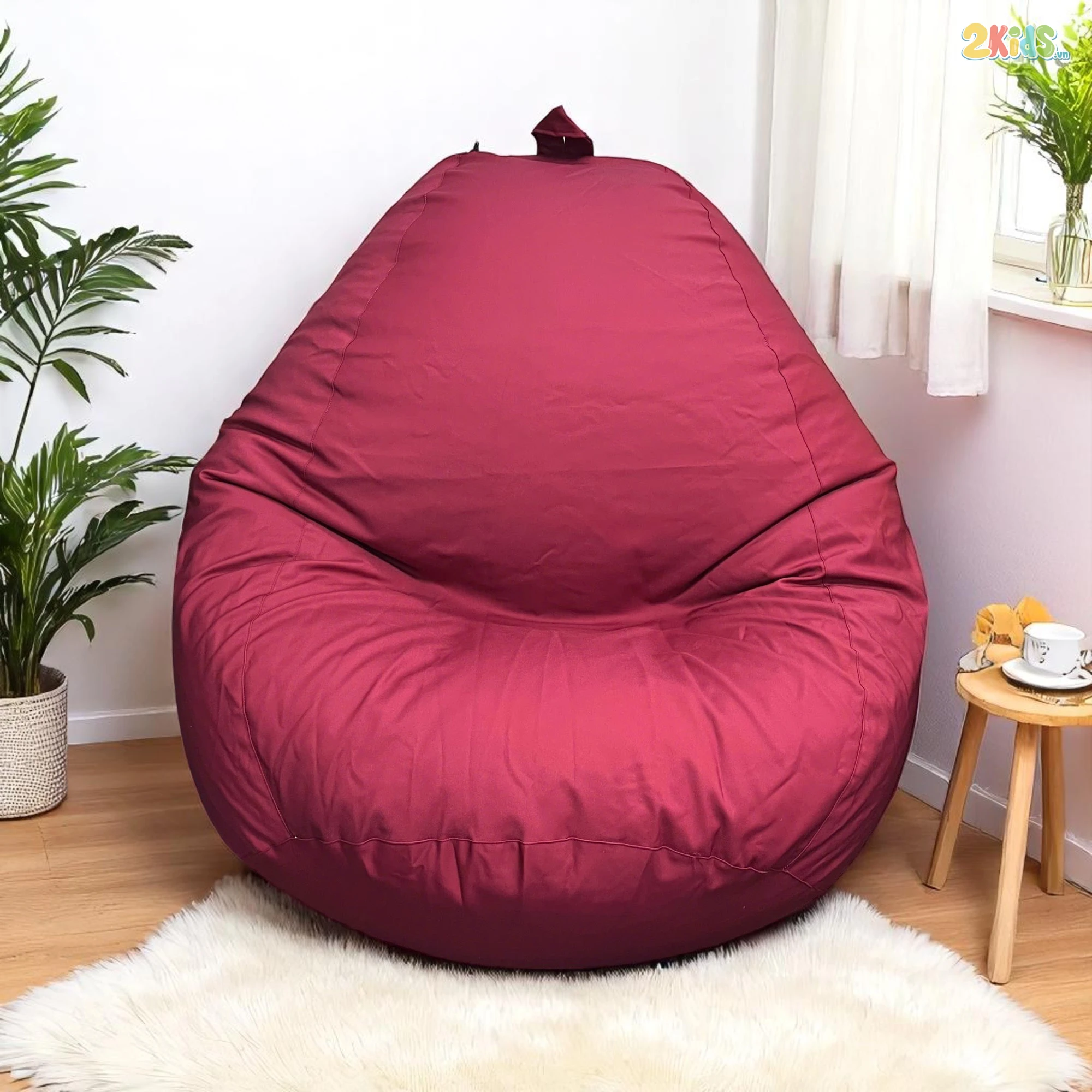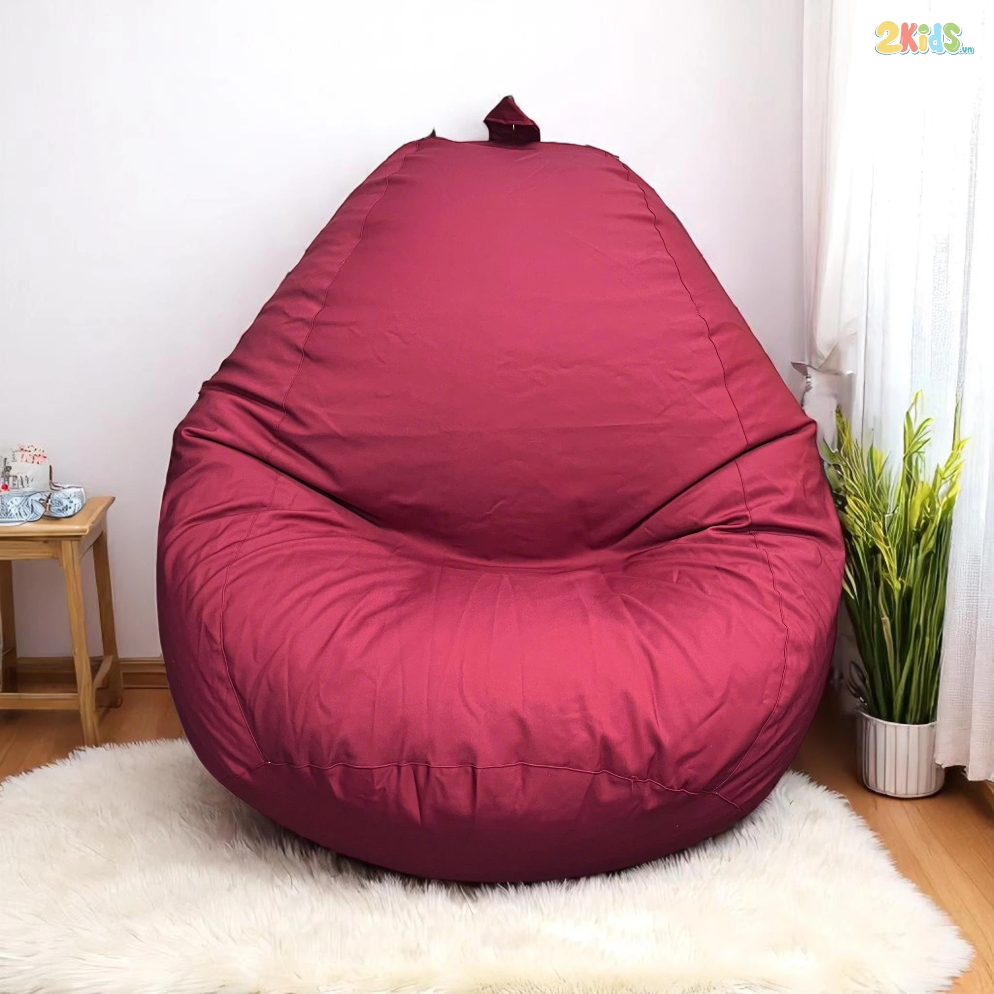 Ghế Lười Hạt Xốp Tựa Lưng Thư Giãn Vải Kaki Màu Đỏ Mận