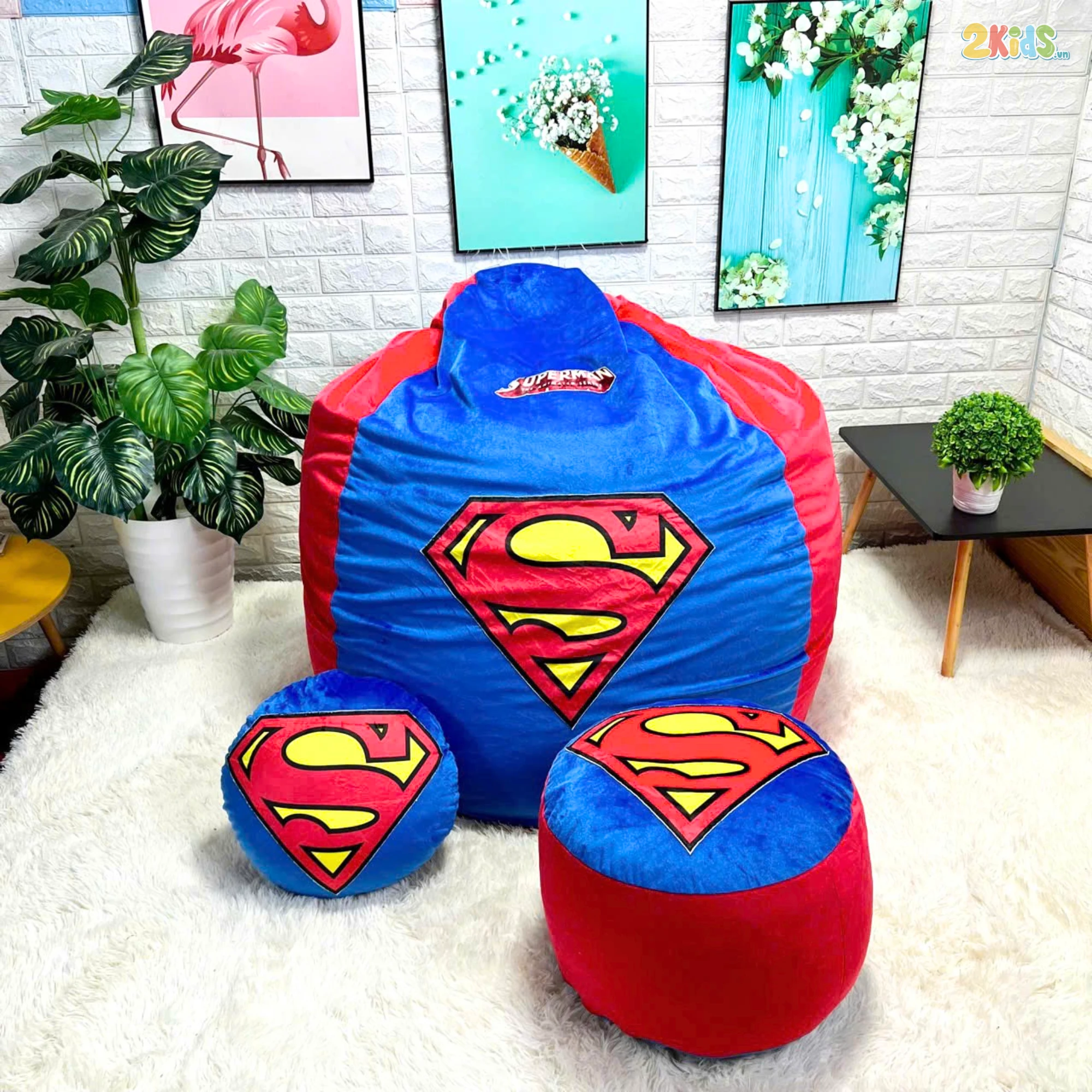 Ghế lười được in họa tiết Superman nổi bật với màu sắc đặc trưng xanh,đỏ,vàng.
